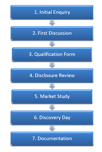 The above questions are just a small sample of the common questions. We have a process that we take qualified candidates through, as shown in the flow-chart. The process is designed to assist us both in making a fully informed business decision.To begin the process simply fill out our On-Line Form, or call us, and we will begin to send you further details.